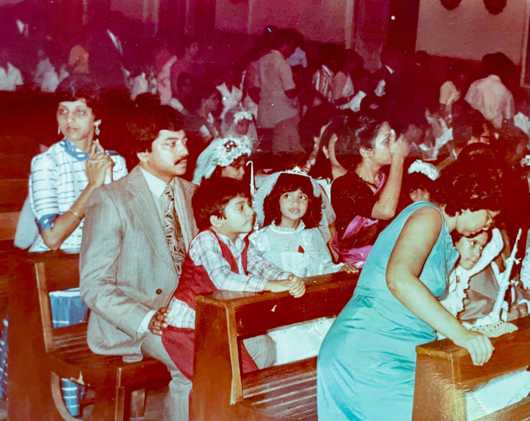 With Aquil on knee, waiting for mass to begin at my First Holy Communion