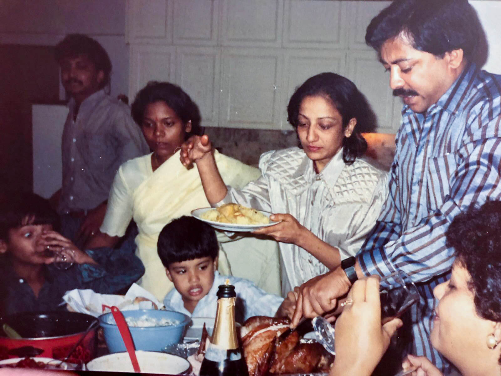 Daddy carving the turkey, Mummy serving the children, cousin Ryan with his finger in the food and Aquil already having impishly downed some grownups glass of wine!