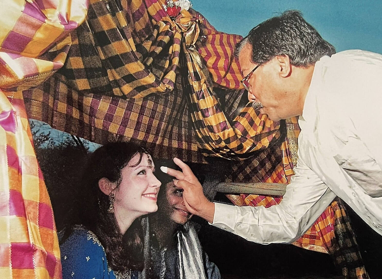 Blessing his daughter-in-law at her Roce.